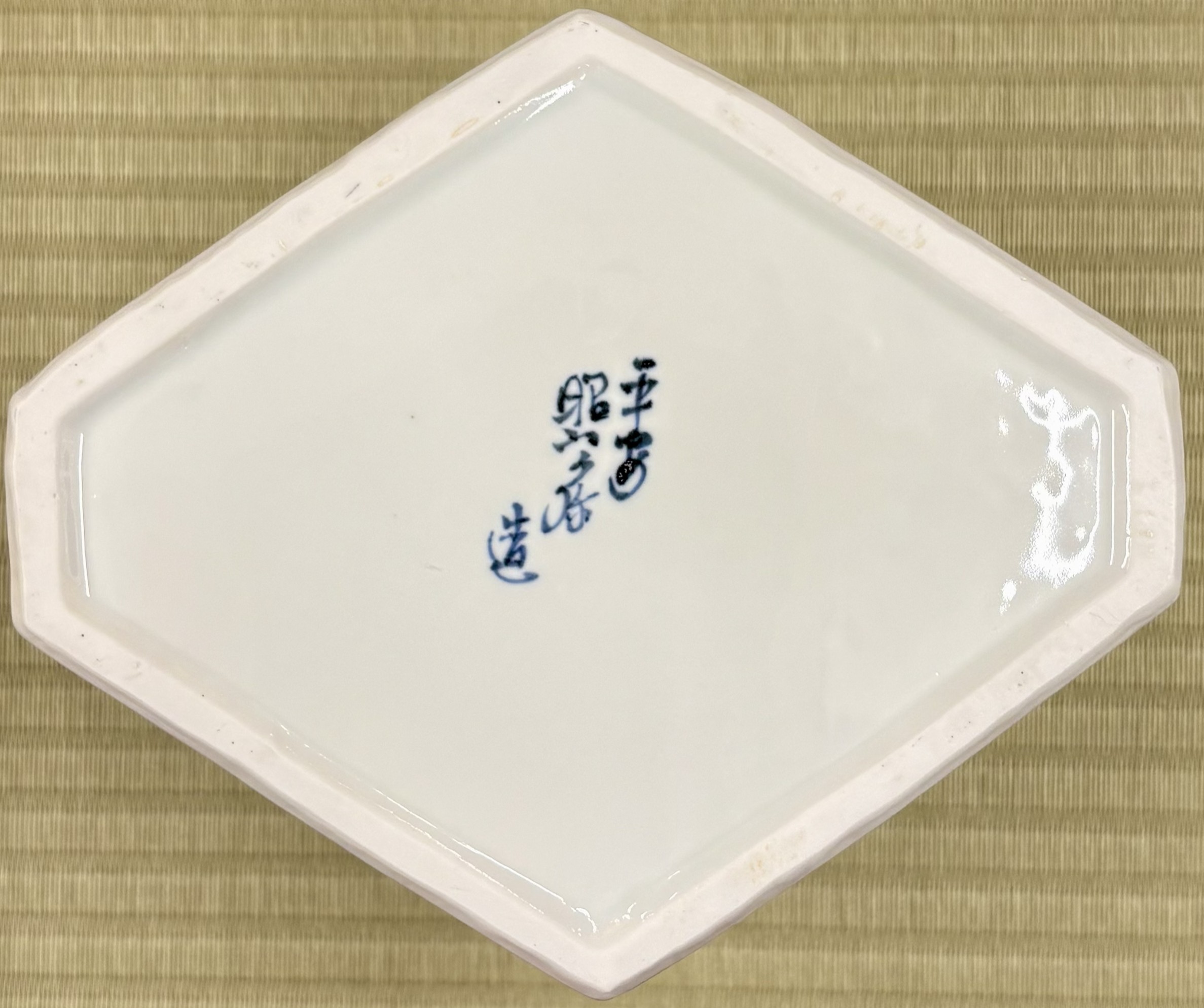 京都 高野昭阿弥作 染付菱馬水指です。