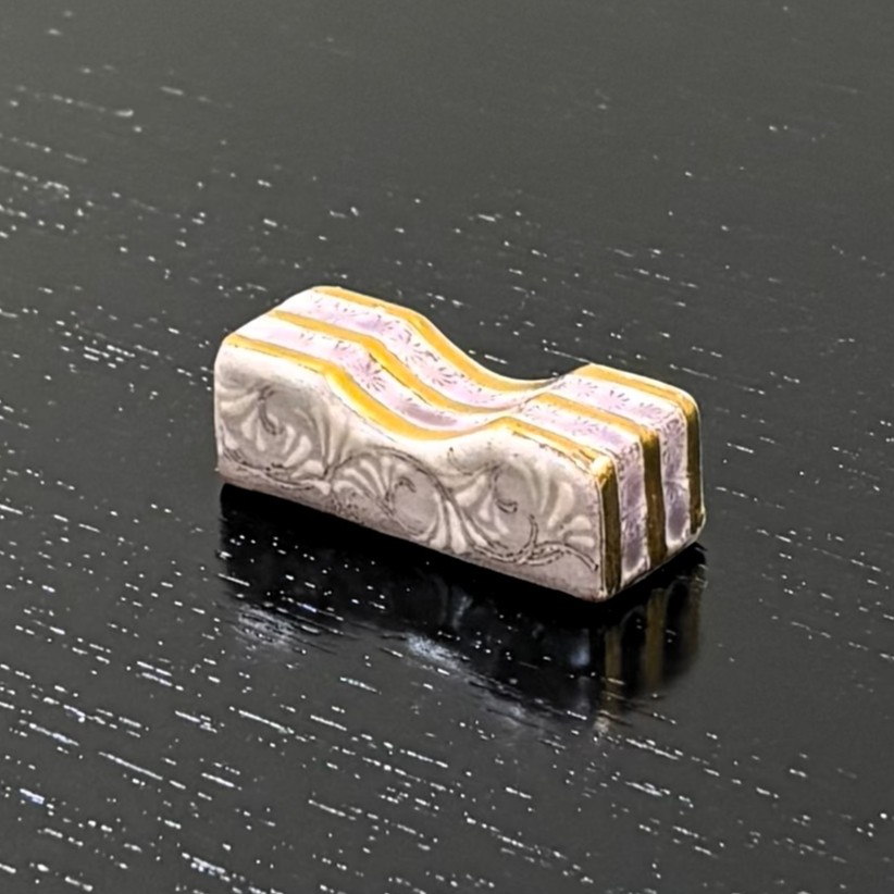 「紫三島」に、金彩と雅やかな紫の上絵付けをして、