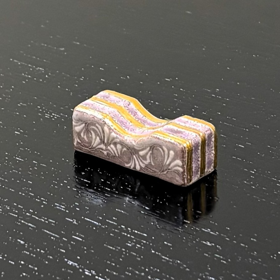 「紫三島」に、金彩と雅やかな紫の上絵付けをして、