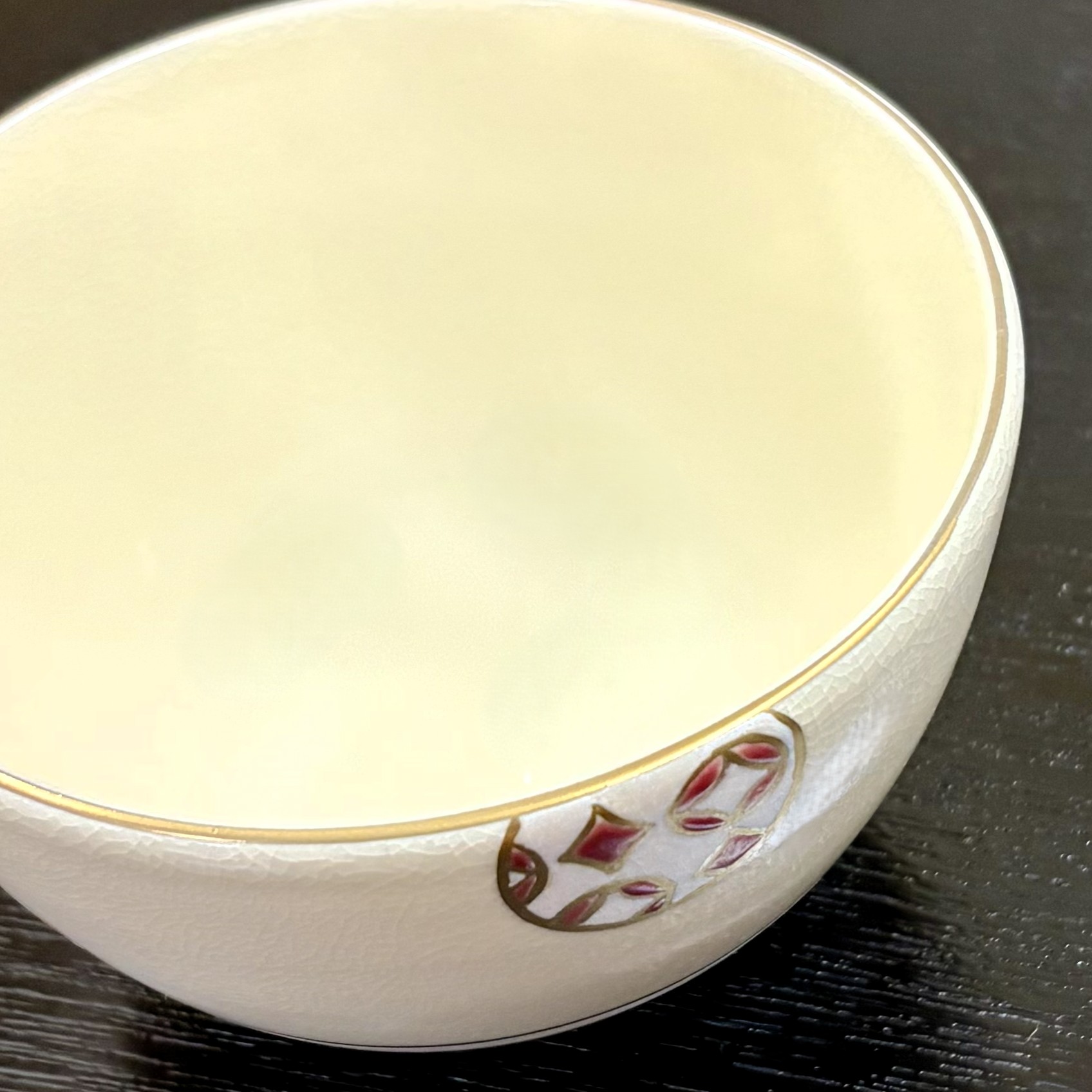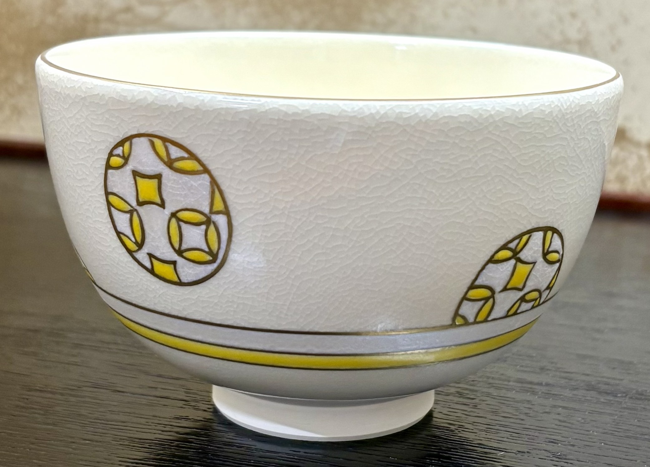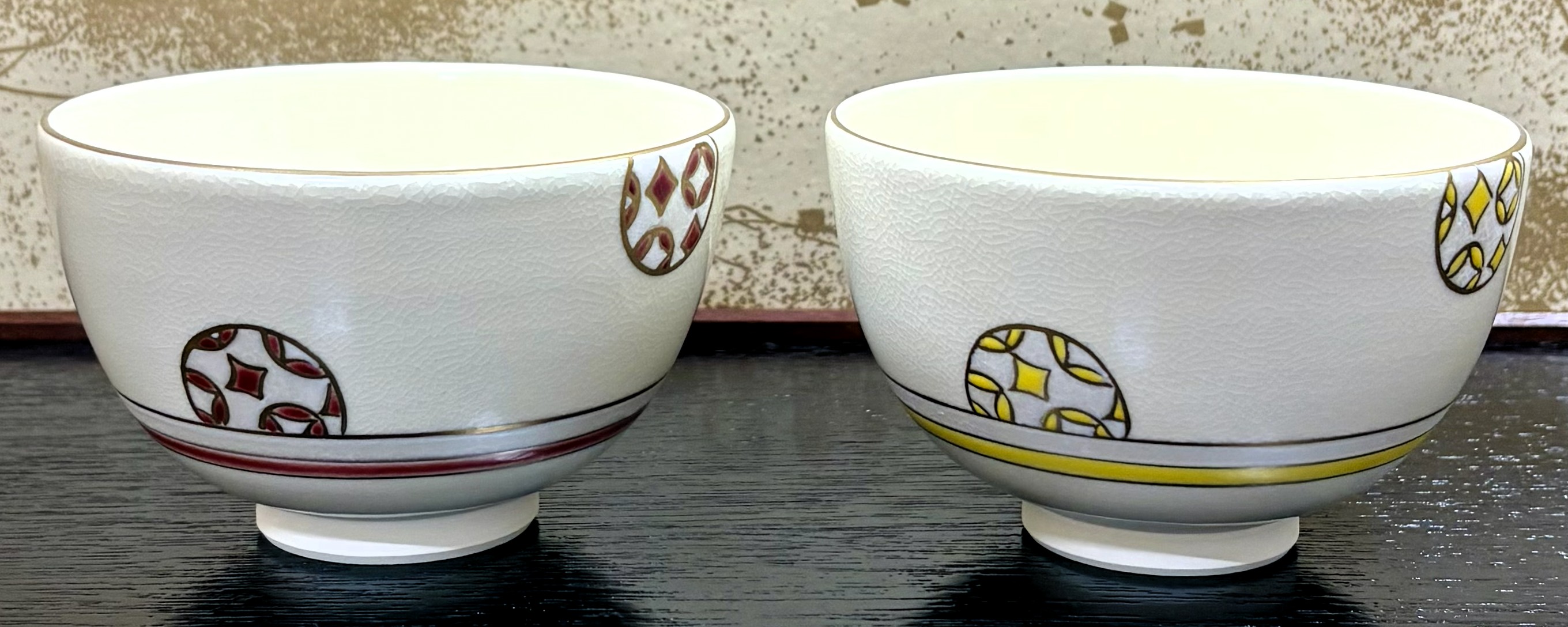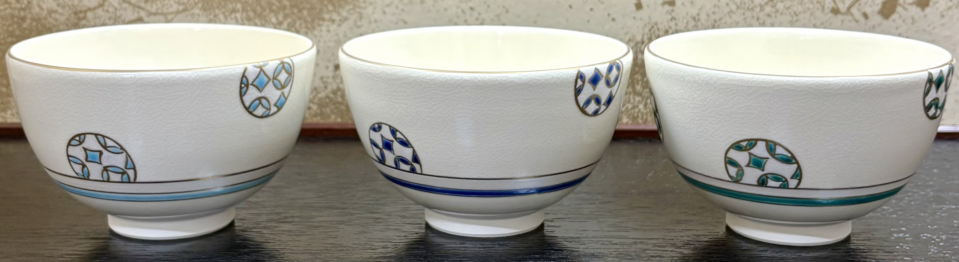 仁清地に七宝の柄が描かれています。赤、黄、水色、青、緑の五色です。