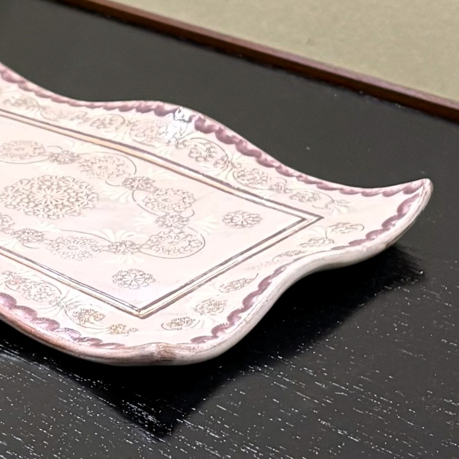 「紫三島」に、金彩と雅やかな紫の上絵付けをして、